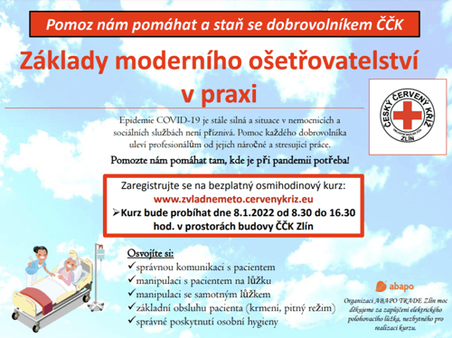 Kurz bude probíhat dne 8.1.2022 od 8.30 do 16.30 hod. v prostorách budovy ČČK Zlín