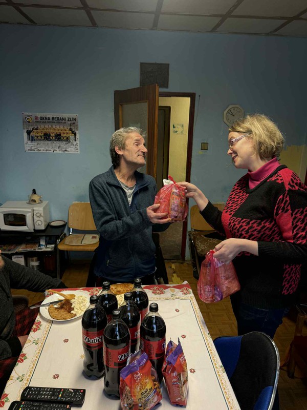Oblastní spolek Českého červeného kříže Zlín pomáhá a nezapomíná ani na osoby bez přístřeší, kterým se snaží náročné Vánoční období co nejvíce zpříjemnit, a proto pro ně každoročně zajišťuje vánoční oběd.